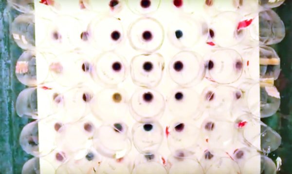 2. Recortam-se círculos na medida exata de um gargalo de uma garrafa PET espalhados em toda a prancha de maneira uniforme.