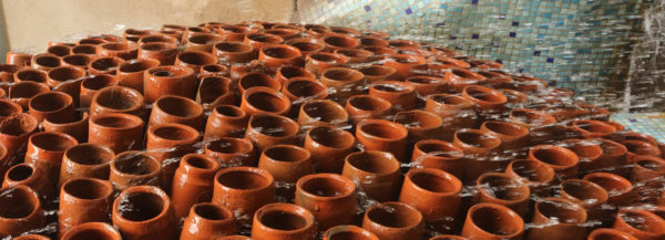 O processo de resfriamento acontece quando a água escorre pela estrutura (é necessário molhar uma ou duas vezes por dia), sendo absorvida pelas unidades porosas que se infiltra na superfície externa onde será evaporada, transformando-se em ar frio. A água acaba sendo esvaziada em um recipiente e ganha um aspecto de cachoeira.