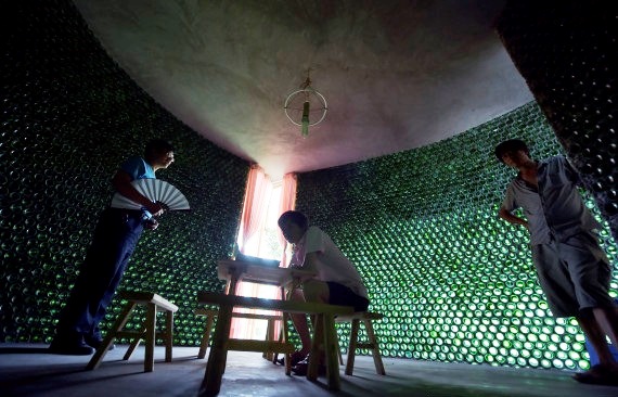 Quando todos os seus colegas recém graduados planejavam procurar emprego no mercado, Li Chongqing Rongjun do sul da China decidiu colocar seu aprendizado em prática e com a ajuda do seu pai colocou a mão na massa e construiu seu próprio escritório com garrafas de cervejas.