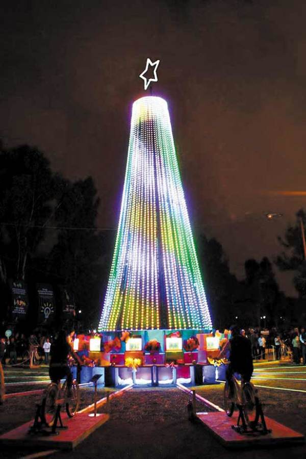 Essa época do ano as cidades se iluminam para a decoração natalina aumentando ainda mais o consumo de energia. Pensando nisso, um exemplo de árvore de Natal mais sustentável foi montada há anos atrás em Puebla, no México, com um total de 8000 lâmpadas LED’s alimentadas pela energia cinética gerada nos pedais de 15 bicicletas adaptadas.