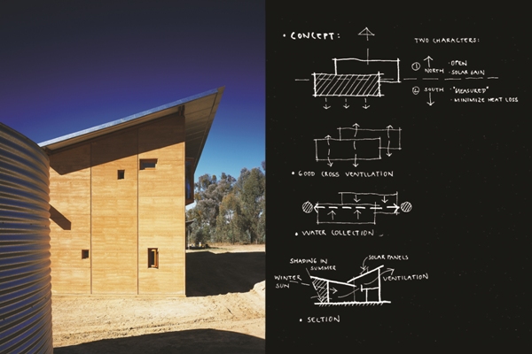Localizada no nordeste de Victoria, na Austrália, em um local relativamente remoto sem abastecimento de energia e água, a casa tem design simples e compacto.