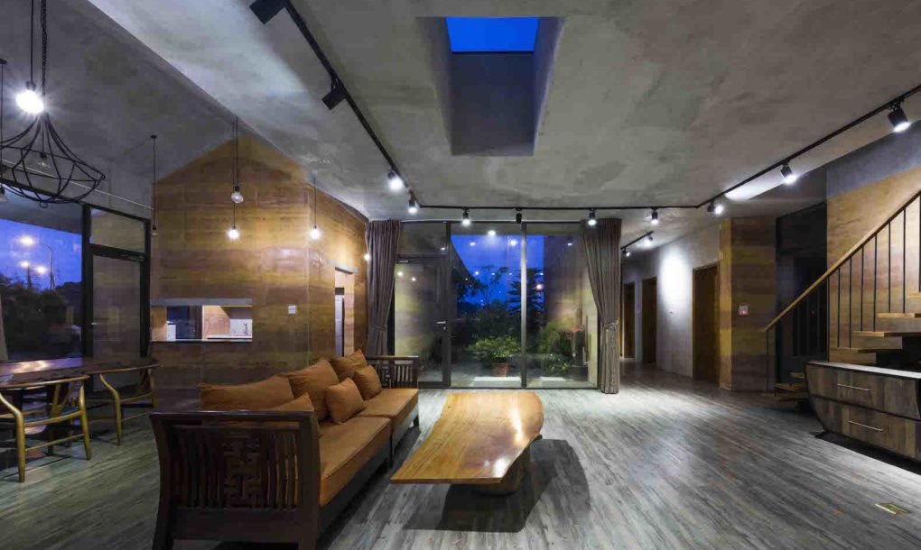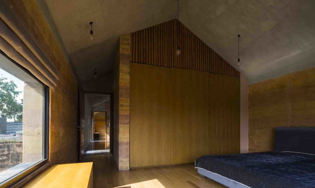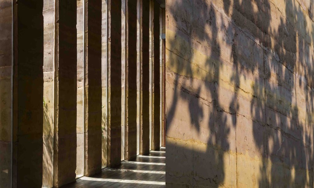 Um detalhe importante: o solo foi coletado bem próximo ao local da construção, num raio de até 32 quilômetros, uma iniciativa que barateia e deixa a casa mais sustentável, uma vez que foi diminuída a necessidade de transporte para conseguir o material, reduzindo as emissões poluentes relacionados ao mesmo.