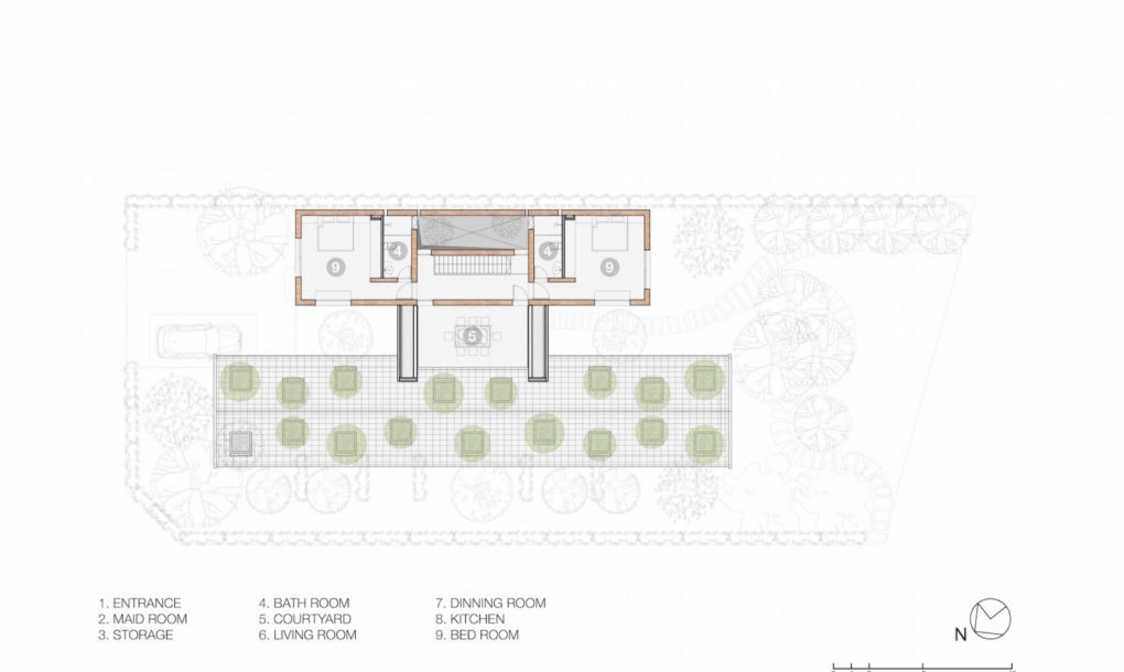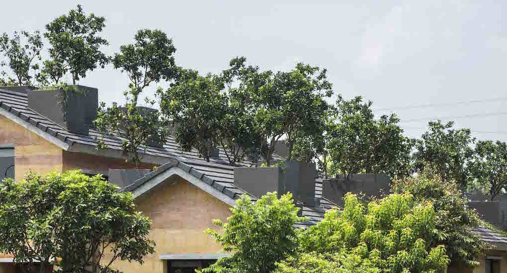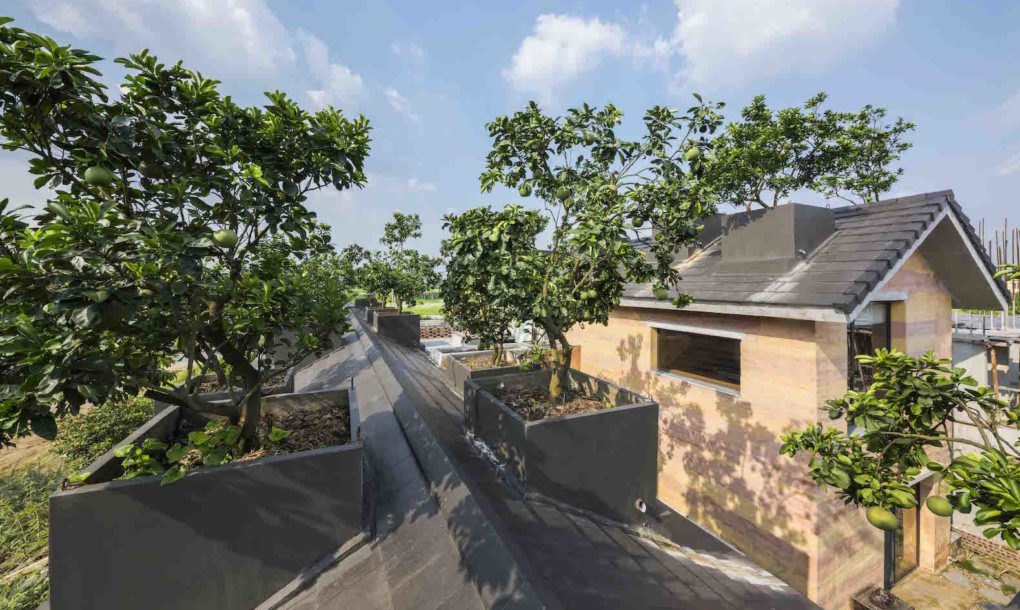 A casa de terra em Hanoi, conhecida como Dong Anh House, não é o primeiro projeto onde os arquitetos Vo Trong Nghia Architects colocaram árvores no telhado, a solução já havia sido aplicada na House of Tree, também no Vietnã.