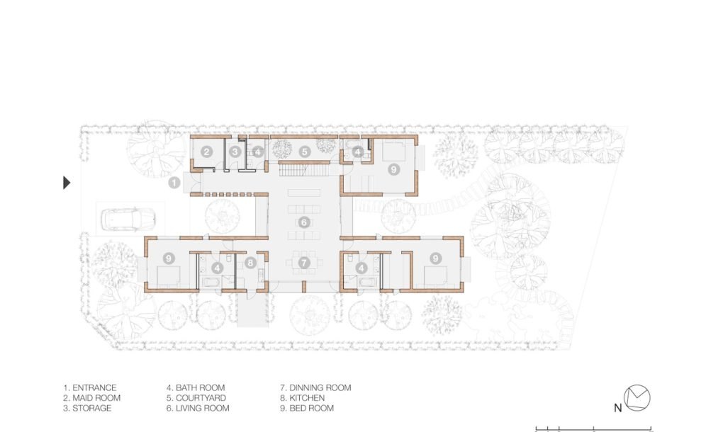 Nichos especiais foram instalados no telhado para que árvores frutíferas pudessem ser plantadas e o resultado é um espaçoso lar – 5832 metros² e 5 quartos – completamente cercado pela natureza. Sombra de graça e frutas ao alcance da mão. Um oásis no meio da cidade.