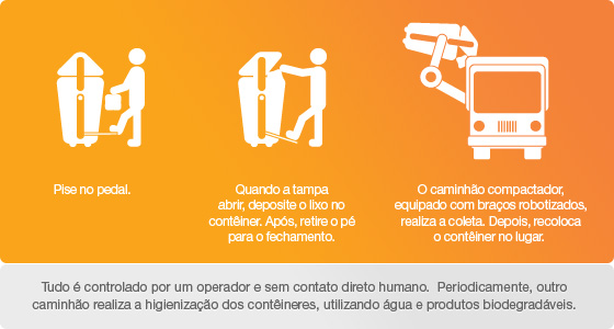 – Mais conforto para a população, o descarte, o resíduo orgânico e o rejeito pode ser descartado em qualquer dia a qualquer momento (24 horas);