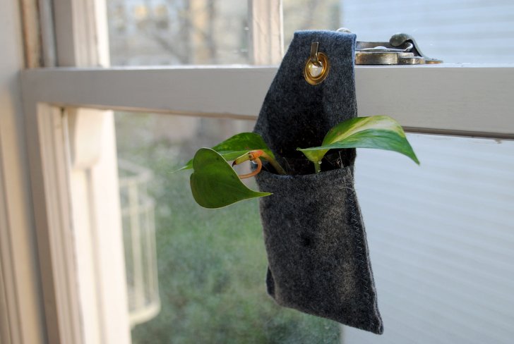 O pequeno jardim vertical com feltro pode ser pendurado por exemplo em uma cozinha pequena para cultivar alguma erva, ou na janela de um pequeno cômodo.