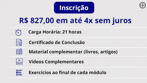 Curso Online LEED EB_OM é dividido em 8 módulos semanais, cada um deles composto por vídeo-aulas com duração variada totalizando de 1:30 a 2 horas por módulo, acrescidos de material didático para estudos, leituras e exercícios complementares para melhor assimilação do conteúdo. A última semana do curso será destinada a revisão e resolução de dúvidas específicas sobre a certificação através de webinar ao vivo, totalizando, portanto, 3 meses de curso, prazo após o qual será emitido o certificado de conclusão do curso.
