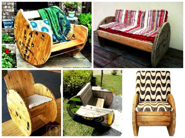 Que tal ter um móvel único? Além de criar algo diferente para o seu espaço, que dificilmente alguém terá um igual, os carretéis de madeira podem ser transformados facilmente em poltronas, sem acabamento, com uma arte diferente, ou até mesmo com os carimbos das empresas que utilizaram a bobina.