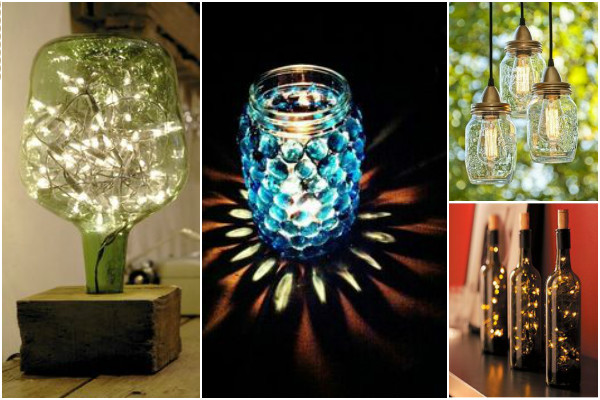 potes de vidro na decoração transformadas em luminárias