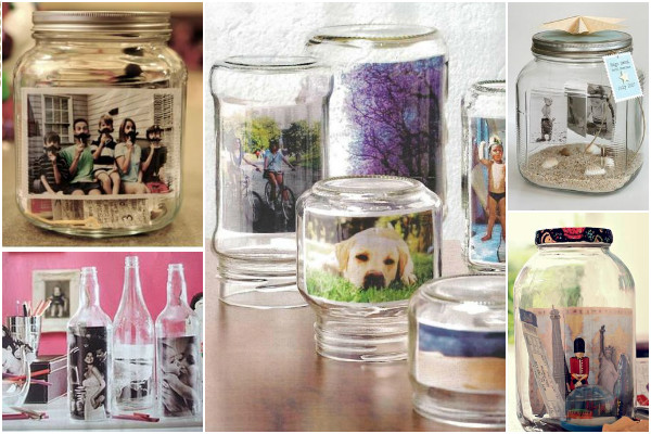 Fotos coloridas ou preta e branca, fica muito divertido dentro do vidro, além disso podem ser decorados com juta ou fita de cetim na parte de abrir dos potes de vidro.
