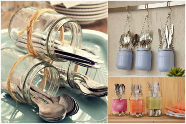 potes de vidro viram porta-talher