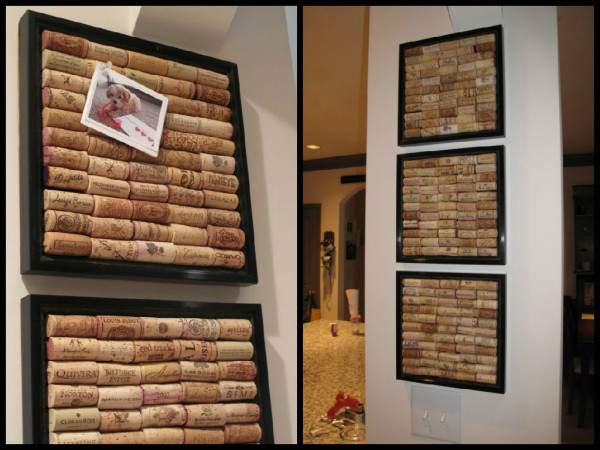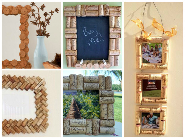 Nas molduras e porta-retratos há várias maneiras de serem coladas as rolhas de vinho, podendo ser inteiras, cortadas ao meio de comprido, ou mesmo em rodelas.