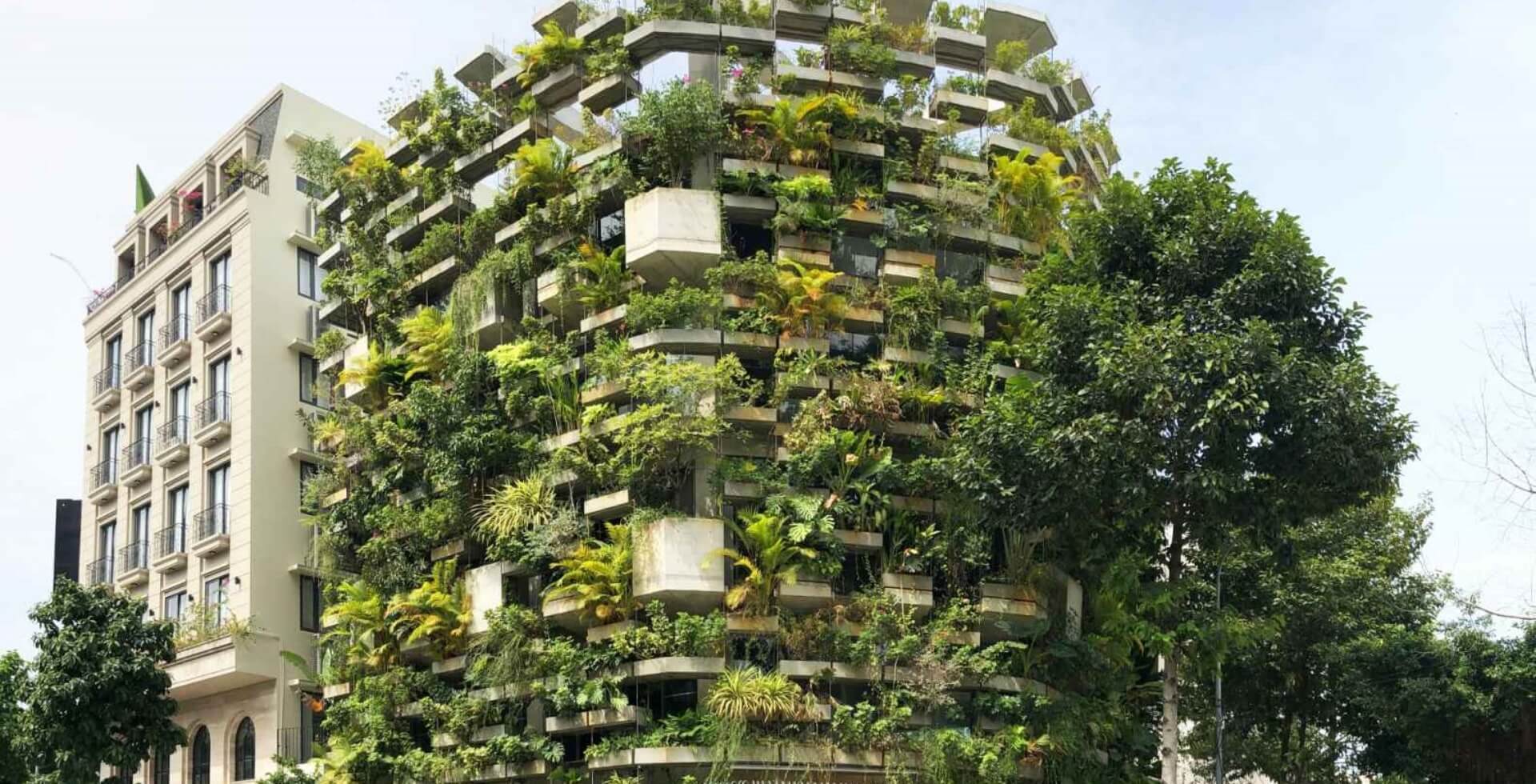 Sua fachada é composta por jardineiras suspensas com diversas vegetações locais. Esta abordagem ecológica fornecerá alimentos seguros e um ambiente confortável com consumo mínimo de energia, ao mesmo tempo que contribui para o futuro sustentável da cidade.