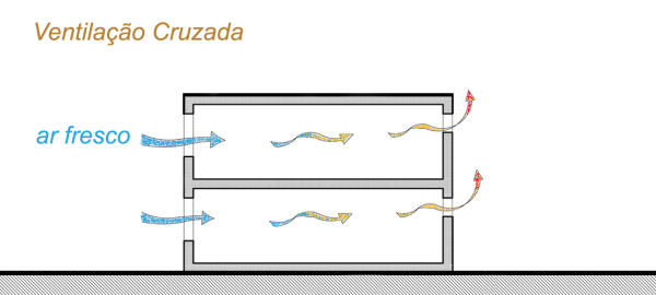 A ventilação natural cruzada é usada em diferentes vãos de abertura em um ambiente, seja ela em elementos opostos ou adjacentes.