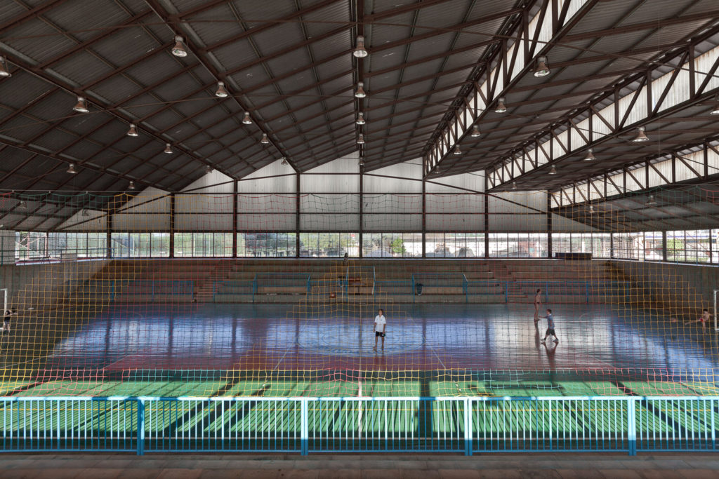 - A área construída 1.989,50 m² (térreo 706,62 m²; arquibancada e área externa 252,92 m², área de projeção da cobertura do edifício 1.085,19 m² e área de projeção da cobertura da arquibancada 467,53 m²