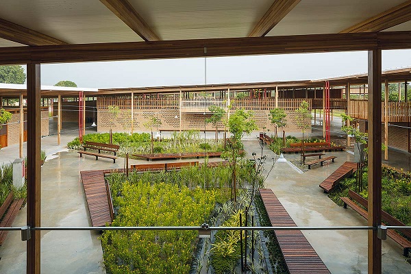 A modulação dos dormitórios em volta do jardim, partiram das próprias crianças, com o desejo em comum. Assim os arquitetos aproveitaram para mostrar a referência de espaços públicos, como praças, pátios e ocas indígenas.