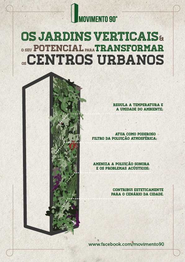 Na figura abaixo, divulgada pelo Movimento 90°, conheça alguns dos benefícios dos jardins verticais: