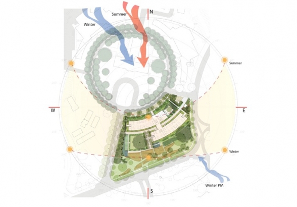 O programa se estende ainda para o site do empreendimento, onde o paisagismo prevê a desenvolvimento de vegetação nativa da Califórnia e espécies tolerantes a secas.