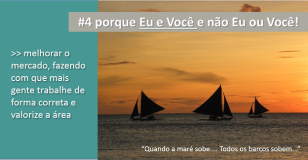 Isso quer dizer que é preciso mudar a visão de mercado. Se estamos falando de uma área que precisa crescer cada dia mais, de forma ética, com trabalho colaborativo, é nosso dever contribuir para isso.