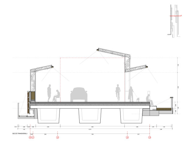 Neste caso, um portal verde, coberto de jardins verticais e com uma pérgola de trepadeiras que gerará sombra ao novo espaço urbano, desenhado para privilegiar os pedestres.