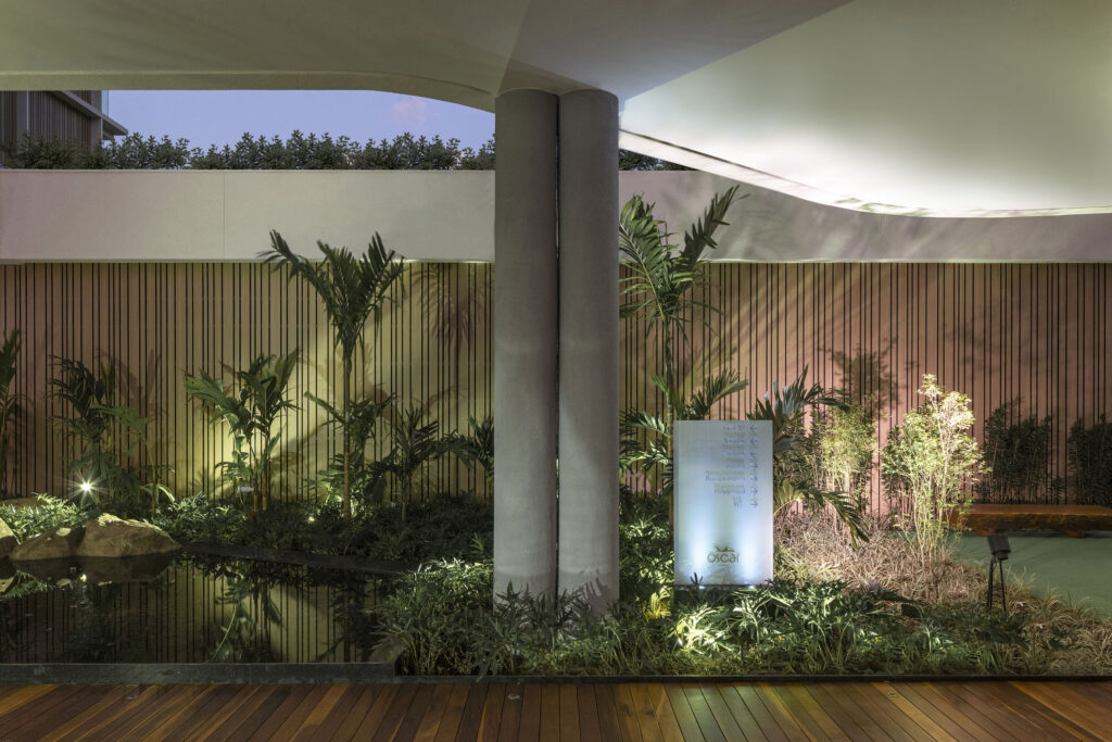 “Ao adentrar pelo hall, moradores e visitantes são surpreendidos ao passar por uma marquise com fachadas e áreas livres que permitem que a luz natural resplandeça o ambiente, sendo filtrada pela vegetação presente em ambos os lados e por lagos que envolvem quem passa, ao mesmo tempo que transmite uma sensação de acolhimento”, pontua Benedito Abud, responsável pelo paisagismo do empreendimento da Trisul.