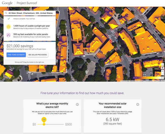 O projeto da empresa, chamado Project Sunroof, estreou hoje com a intenção de ajudar a diminuir o consumo de energia vinda de combustíveis fósseis, através do Google Maps, e mostrar as vantagens de instalar painéis solares nos telhados.google project sunroof