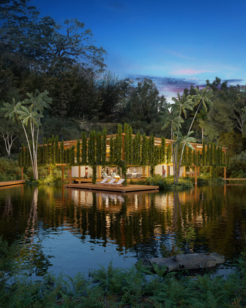 Localizada em uma antiga área de piscicultura no interior do estado, a casa Guaporé será construída em um dos lagos que hoje se encontra abandonado.