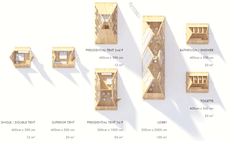 “O foco foi a criação de uma estrutura que não deixasse nenhum impacto sobre o local, nem qualquer dano no próprio bambu, depois que é desconstruída. Os materiais podem ser reutilizados como andaime, em um canteiro de obras ou reutilizados como outro hotel temporário em uma localização diferente “, disse Precht.