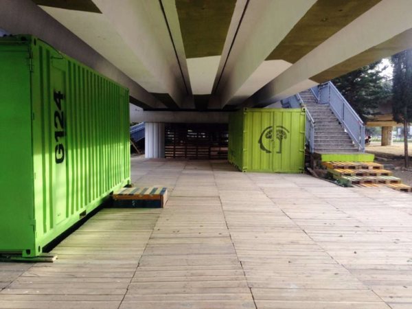 O local faz uso de containers doados por uma empresa que não ia utiliza-los mais, proporcionando espaços de multiuso como workshops para moradores da região.