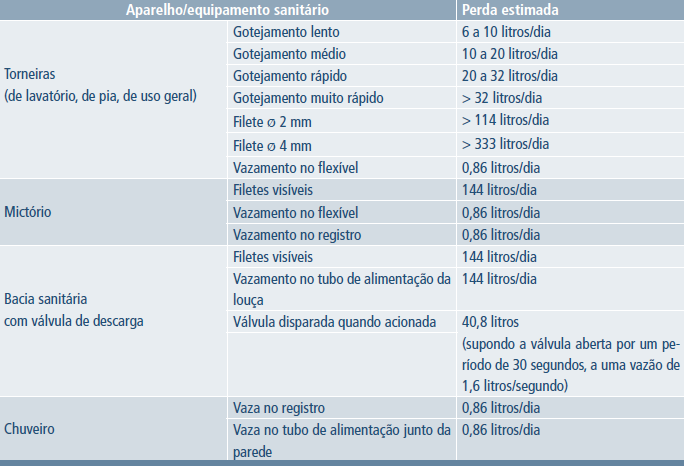À título de curiosidade, segue abaixo uma tabela elucidativa de perdas de água geradas pelos vazamentos: