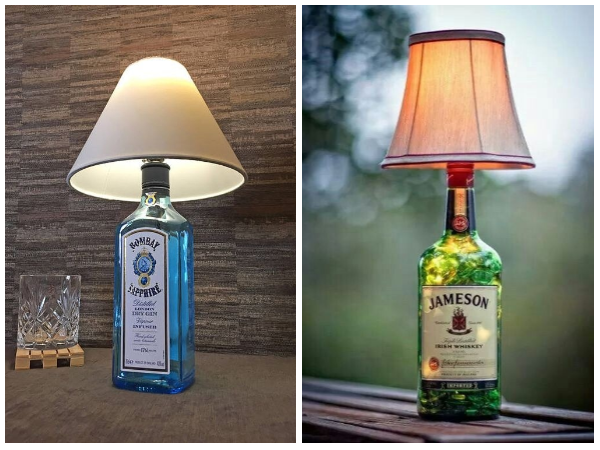 Fazer um abajur é uma das maneiras mais bacanas de reutilizar garrafas de vidro na decoração.