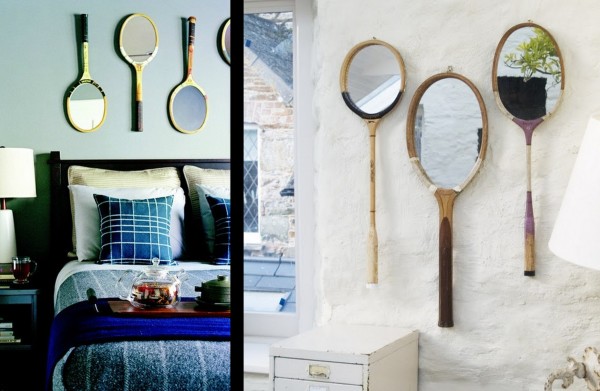 As velhas raquetes de tênis que não tem mais utilidade para o jogo, agora podem virar lindos moldes de espelhos, que têm diversas vantagens na decoração, como aumentar, iluminar, e duplicar o ambiente.