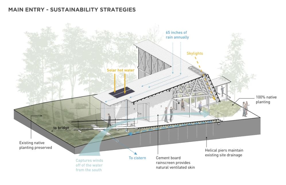 A reforma integrou soluções inspiradas em políticas para se conectar melhor à comunidade, exibir políticas, e servir como exemplo em design sustentável conseguindo obter as certificações LEED Platinum e Living Building Challenge.